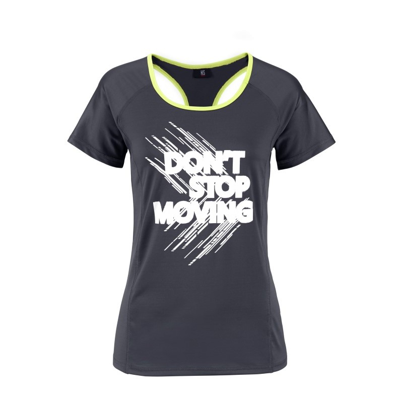 Leicht taillierter Schnitt, weiches leicht glänzendes Material, schmal eingefasster Ausschnitt und Arm, Ringerrücken Flatlock.