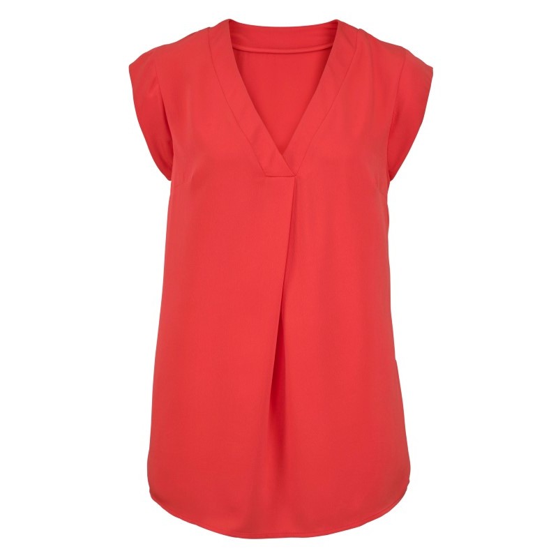 Entspannt elegant: mit dem Shirt von TiM TILOR. Die Vorderseite zeigt sich mit V-Ausschnitt und gelegten Falten besonders feminin.
