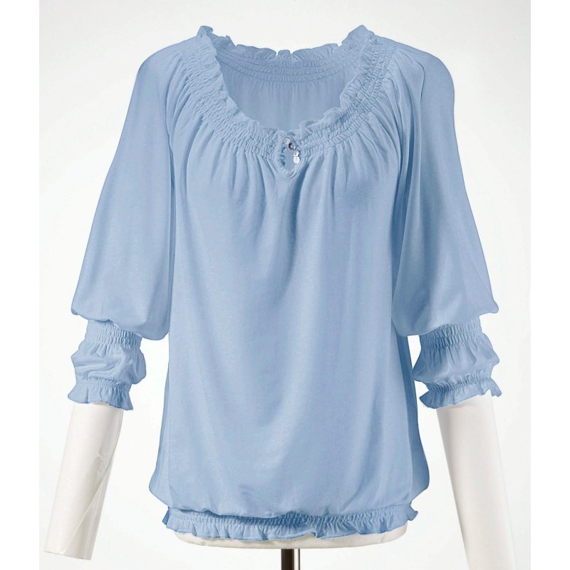 Bluse von EMILI LI mit 3/4-Arm. Der aktuelle Trend im Carmen-Look mit Gummizug.
